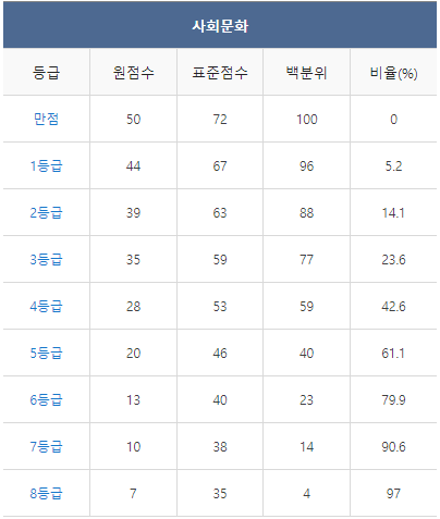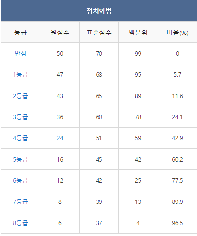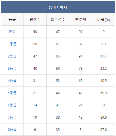 ◈ 2021년 10월 모의고사 등급컷 ◈