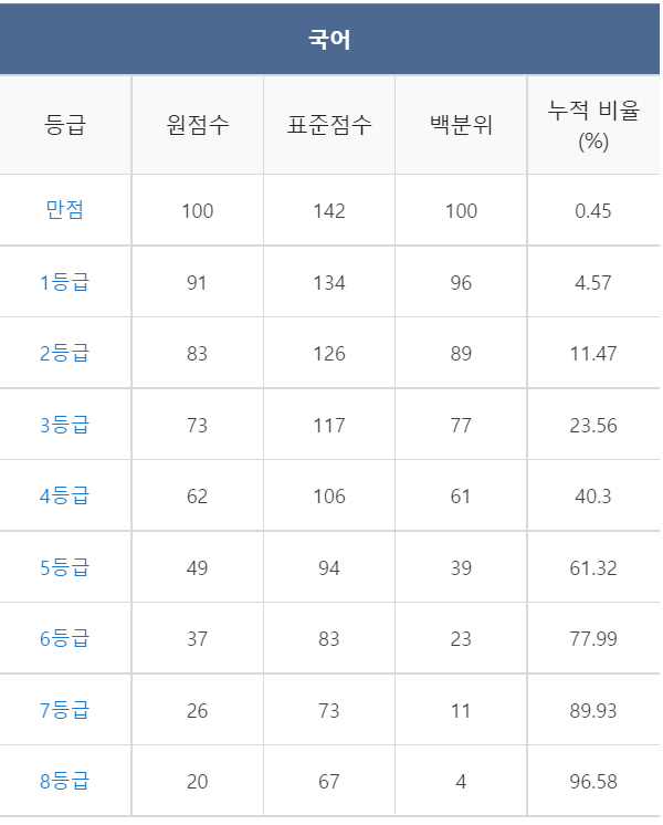 (영어/한국사/탐구 과목은 절대 등급입니다)