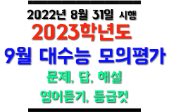 [2022년 8월 31일 시행] 2023학년도 9월 대수능 모의고사 기출 - 문제지, 정답/해설지, 등급, 듣기파일