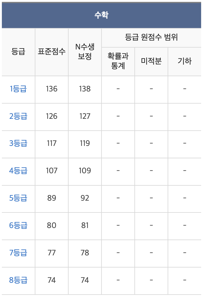 2022년 10월 학력평가 등급컷