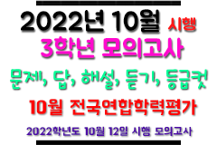[2022년 10월 12일 시행] 2022학년도 10월 학력평가 - 문제지, 정답/해설지, 등급, 영어듣기파일