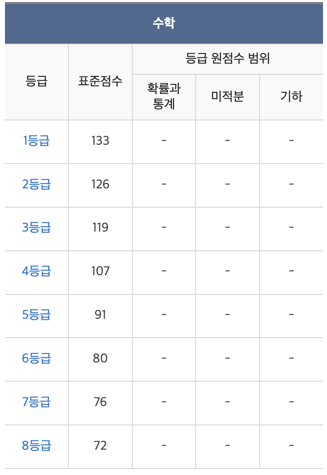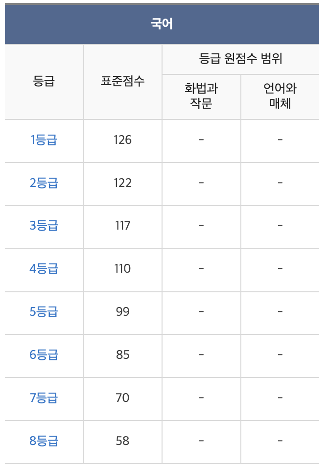 2023학년도 수능 등급컷