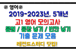 | → [영어 기출][2019-2023, 5개년/고3] 영어 빈칸 문제 모음 : 영어 모의고사/수능 기출 유형별 문제 모음(5개년) (1) | 2023.09.04 |