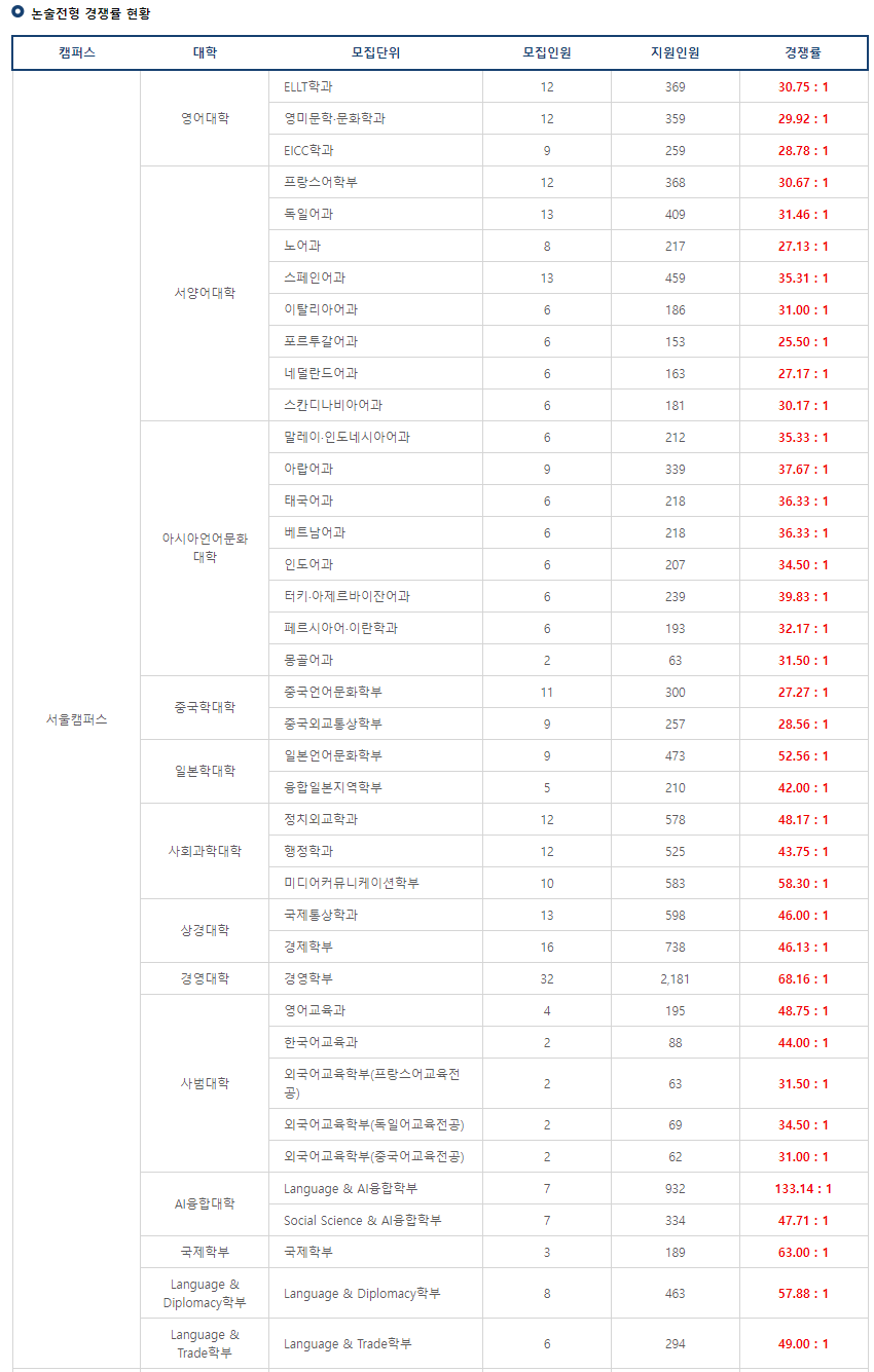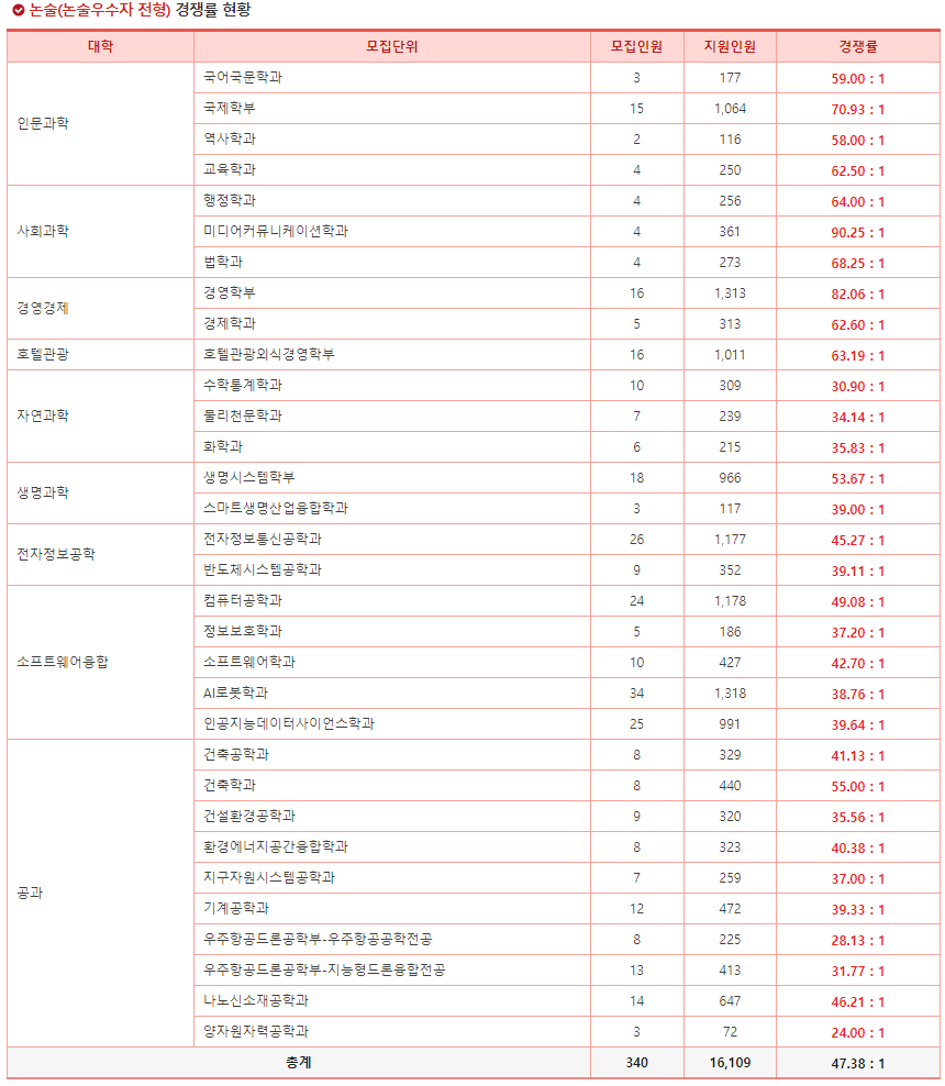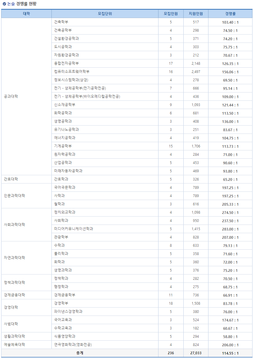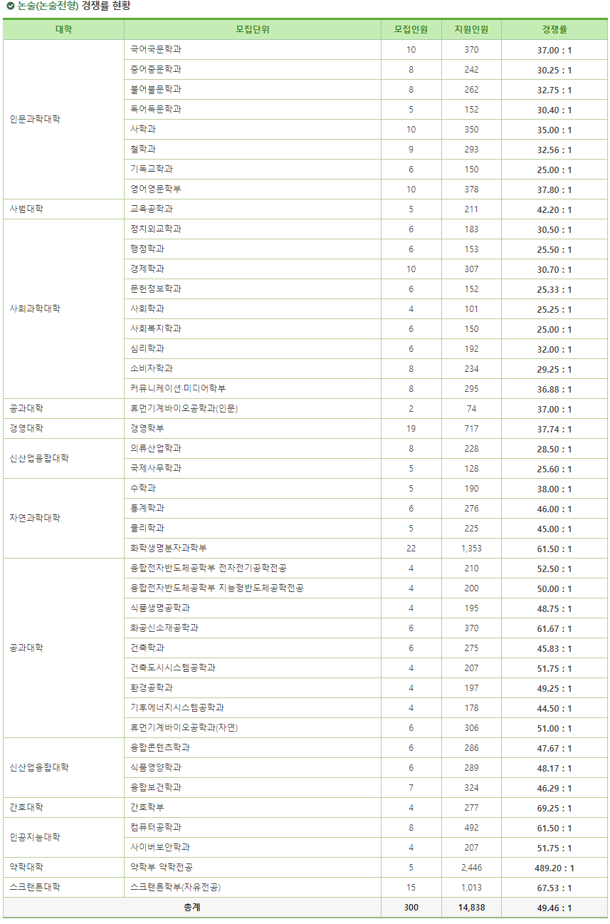 논술시험을 준비하는 학생이라면 경쟁률을 확인하고 논술 준비에 만전을 기하기 바랍니다.