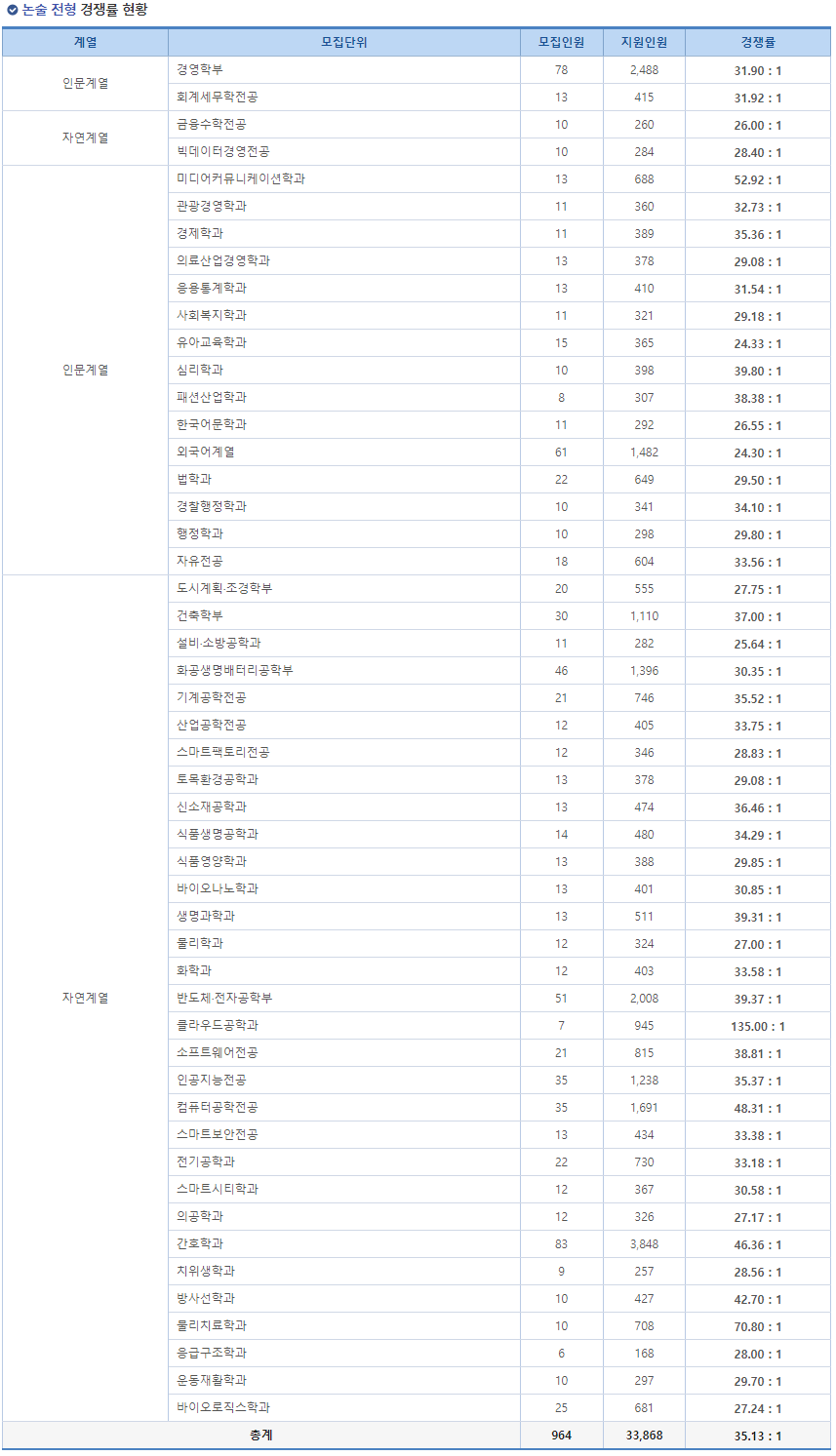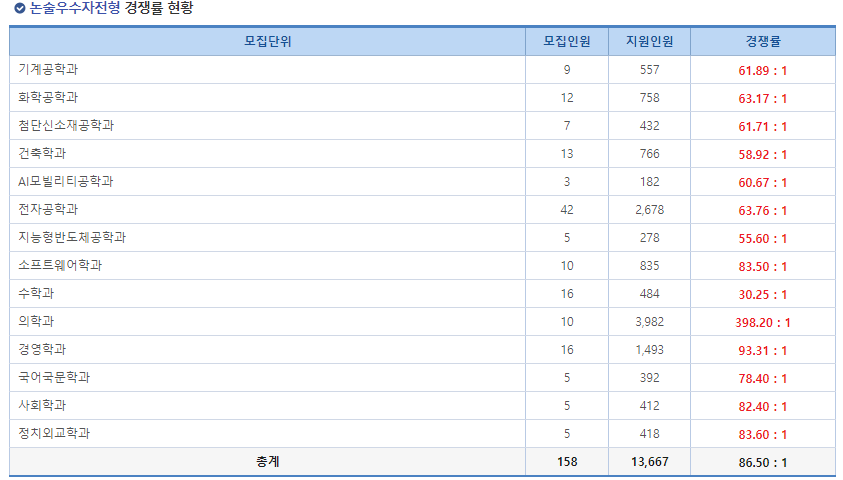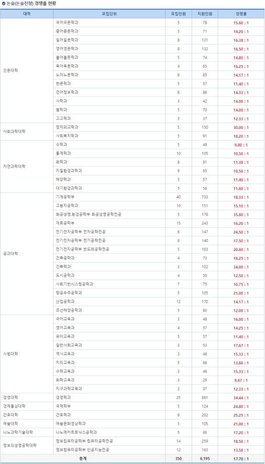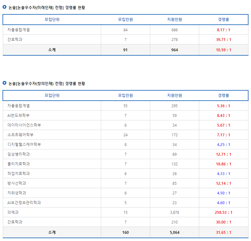 논술시험을 준비하는 학생이라면 경쟁률을 확인하고 논술 준비에 만전을 기하기 바랍니다.