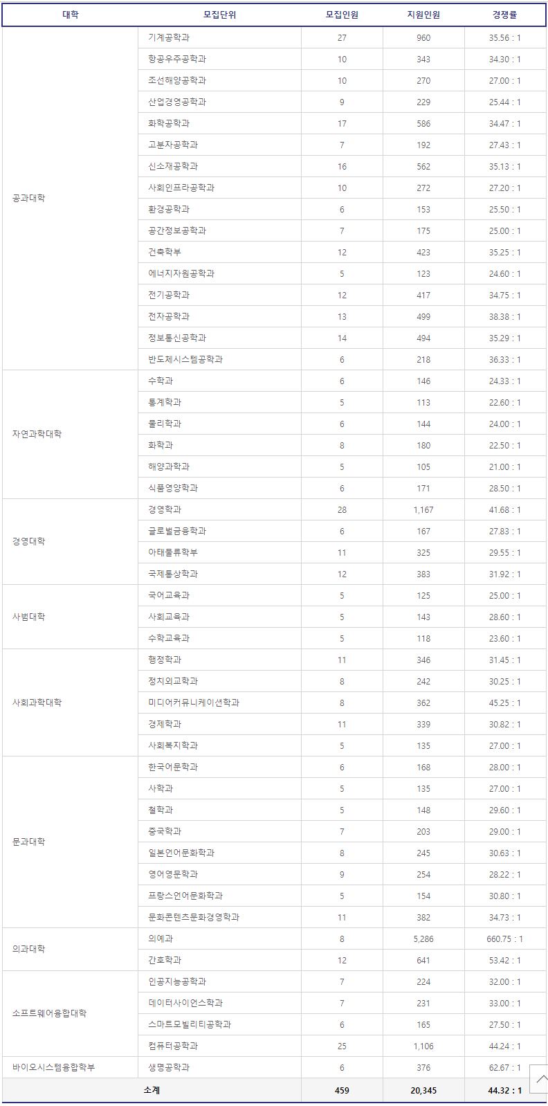 ◆ 2024학년도 논술 경쟁률 - 부산대 ◆