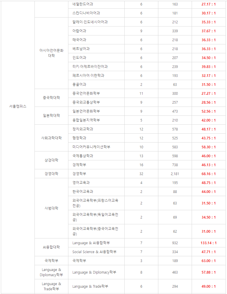 ◆ 한국외대 2024학년도 논술 경쟁률 ◆