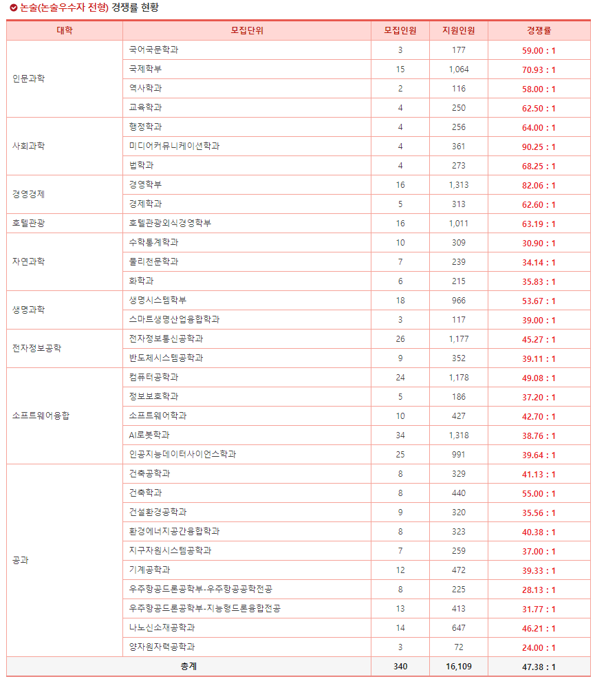<최고 경쟁률 학과/학부>