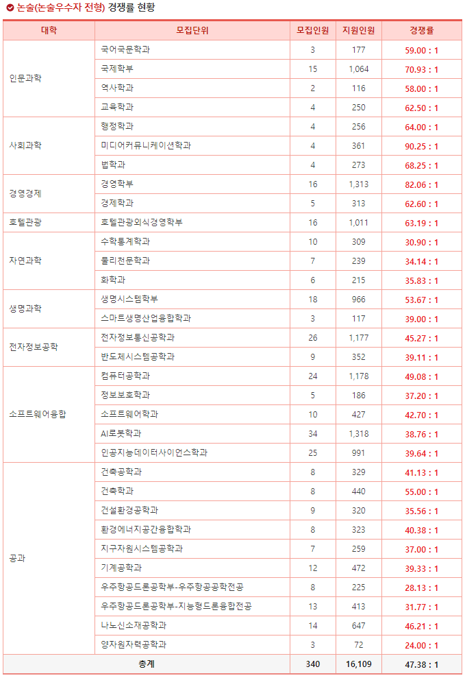 ◆ 2024학년도 수시 논술경쟁률(최종) ◆