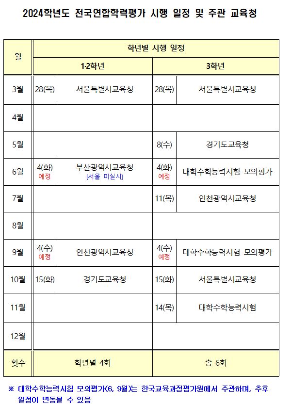 1, 2학년 학생들은 총 4번의 교육청 학평이 예정되어 있습니다.(서울은 3회)