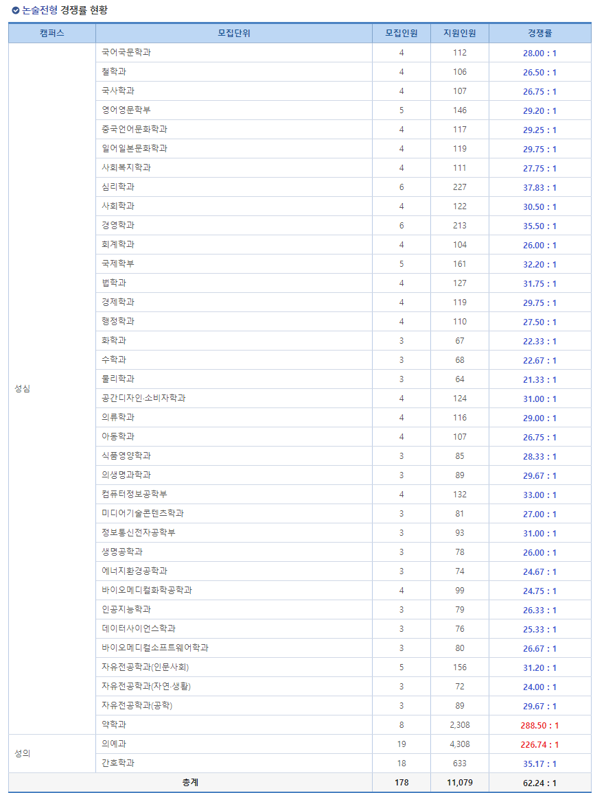 ◆ 2024학년도 논술 경쟁률 ◆