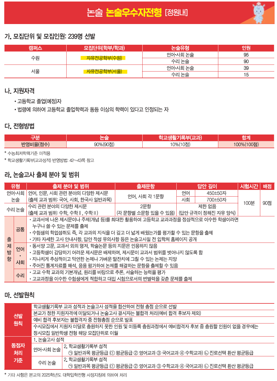 ◆ 논술 모집 요강 ◆