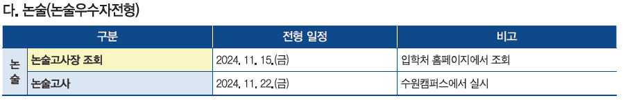 2025학년도 논술 일정
