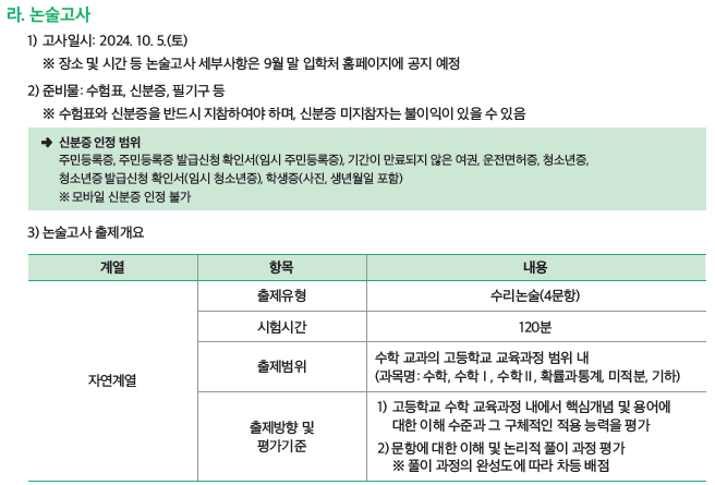 ◈ 시립대 논술 전형 일정/날짜 ◈