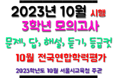 → 2023년 10월 고3 모의고사 문제, 답, 해설, 등급컷, 영어듣기