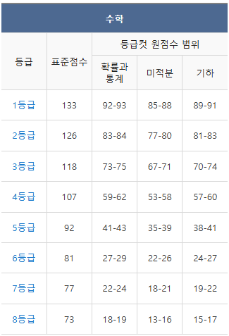 ◆ 2025학년도 수능 등급컷 ◆