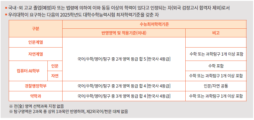 ◆ 2025학년도 수시 모집요강 및 논술 수능최저◆