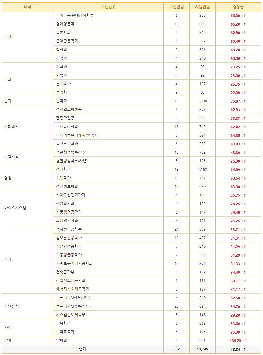 ◆ 2025학년도 수시 논술 경쟁률◆