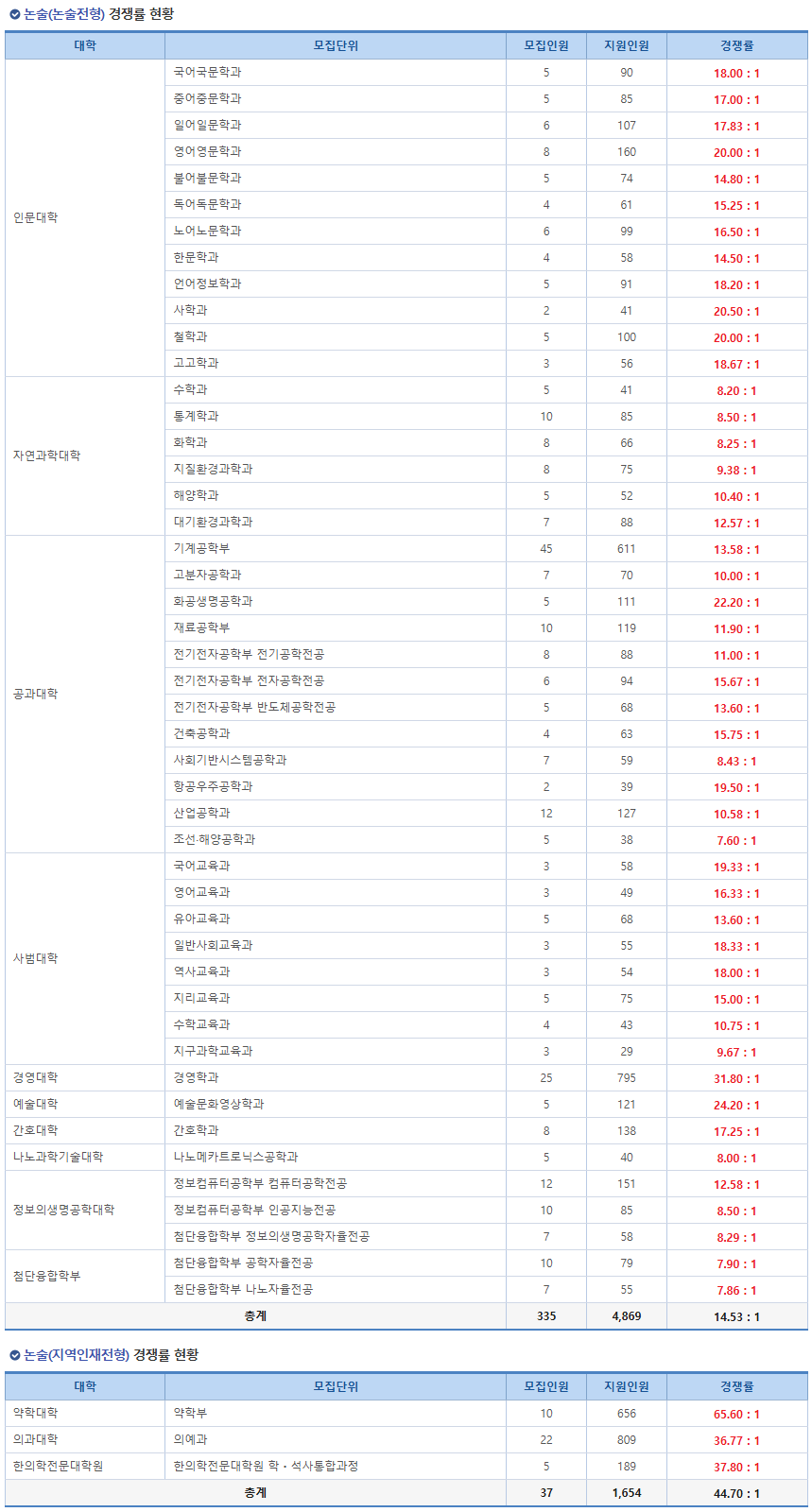 ◆ 2025학년도 부산대 논술 경쟁률 ◆