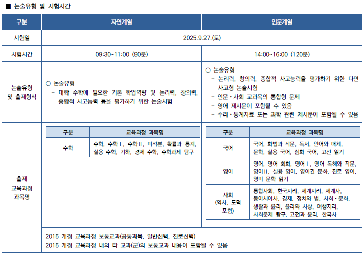 ◆ 2026학년도 수시 논술 일정/날짜/시간 ◆