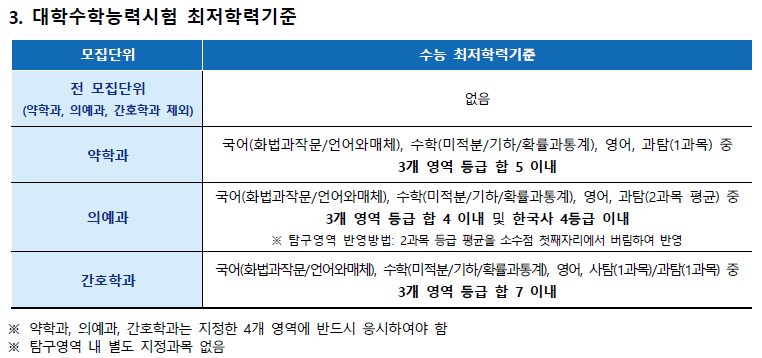 ◆ 가톨릭대 논술 수능최저학력기준 ◆