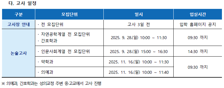◆ 2026학년도 가톨릭대 논술 일정/날짜 ◆
