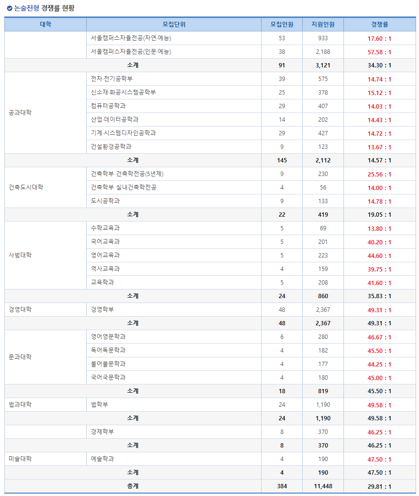 ◆ 2025학년도 홍익대 수시 논술 경쟁률 ◆