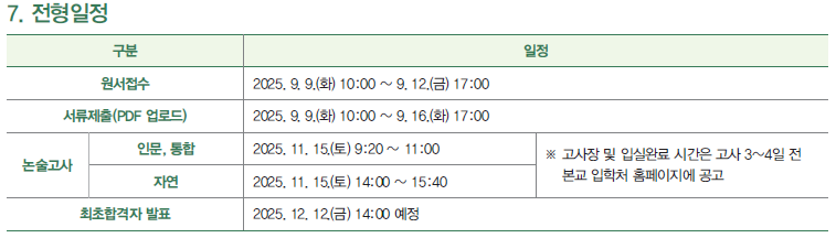 ◆ 2026학년도 논술 안내 및 수시 모집요강◆